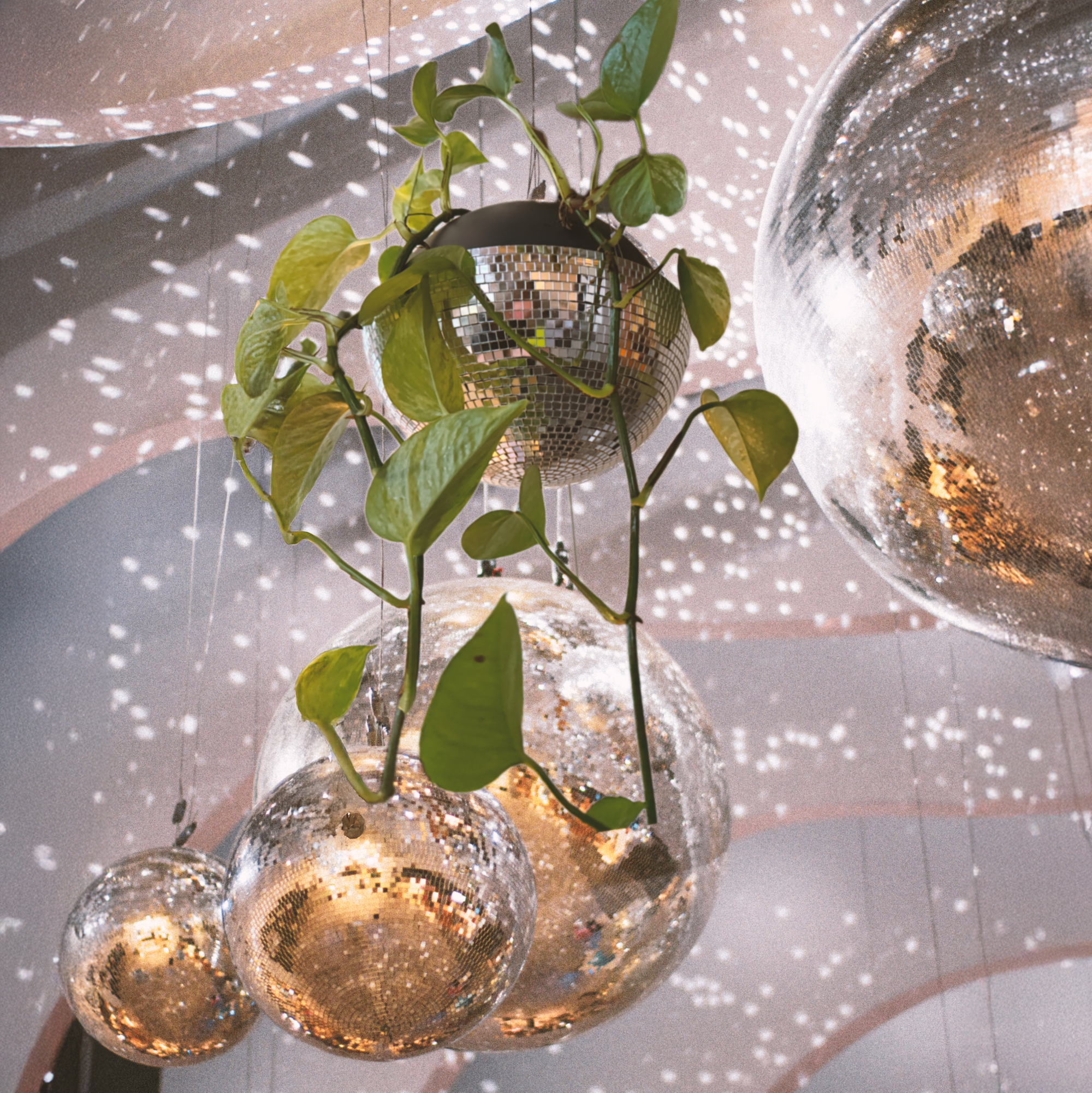 The last thing I created was a hanging vase, covered in tiny mirrors, to make it look like a disco ball. Unfortunately, the vase was already in use, so I had to do the process standing up and bending my way though to the harder to reach spots. It took me approximately three and a half hours.